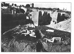 By 1888 the number of casts in the museum had reached an even dozen – not much to show for twenty-five years of trying, but several of them had already become quite famous. The culmination of the second stage came with the production in 1888, on the occasion of a visit by Kaiser Wilhelm II, of a series of twelve reductions of the first dozen victims by the Neapolitan sculptor Achille d’Orsi. When the prospect of a state visit of the German emperor, Wilhelm II, arose, someone in Rome, perhaps Fiorelli himself, had the idea of presenting the royal visitor with a set of reproductions of the Pompeian casts, and d’Orsi was hired to make them. He advised making half-scale reductions in terracotta, which might then be cast in gesso. He worked on them in August and September so they would be ready for the emperor to examine beside the originals during his visit in October. D’Orsi’s copies were apparently a success – and, incidentally, demonstrated the artistic side of the undertaking. They were subsequently shipped to Berlin each with its own specially made glass case. In Berlin the casts were given permanent exhibition space in their own room in the Antiquarium on the second floor of the Altesmuseum. (It is presumed they were destroyed during the Second World War.) The third stage: context and multiplicity By 1889 the Pompeian museum had run out of space in which to absorb new casts. A photograph of the museum taken in the 1890s shows casts from 1889 in cases stacked one atop the other, creating a bizarre effect.12 In some ways the progress of the excavations and the remodelling of the museum necessitated by continued progress had little effect upon the newly attained icon status of the casts. The Sleeping Man, the Watchdog, and the Body of a Young Woman continued to sell postcards and to draw visitors to the site. A third stage in the development of the casts occurred when the excavators – and the photographers – began to develop the potentials of contextualized groupings, noted as early as 1863 but, for technical reasons, left undeveloped by the excavators.13 Emphasizing groups, however, meant taking attention away from the individual bodies and so the third stage may appear to be distinctly ‘post-classical’ in the production of iconic images. This third stage in the history of the Pompeian casts saw the appearance of site-specific casts – and the return of (or the refusal to exclude) fragments. In this grouping from 1914 some fine casts are to be seen together with a larger number of skeletons in a photographic ensemble which seems to have served the purpose of final record (fig. 17). In any event, the only cast made subsequent to the 1880s to achieve the status of an icon is the Crouching Man found by Maiuri near the Grand Palestra in the 1930s.14